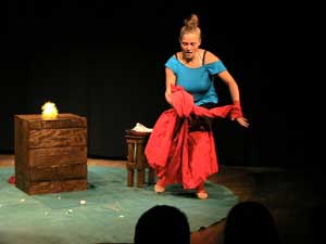 »Birte Hebold nimmt sich allein des vielstimmigen Spiels an, zaubert aus ihren Taschen und einem Tischchen Figuren und Requisiten, verwandelt die Miniaturbühne in einen gedeckten Tisch oder in die neue Heimat am Ufer...« (FAZ)